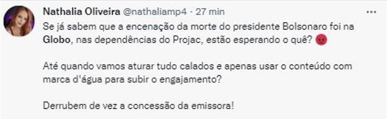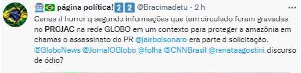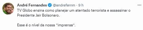 Políticos, como a deputada federal Carla Zambelli, o deputado estadual André Fernandes e o ex-secretário especial da Cultura, Mario Frias, publicaram as fotos e deixaram claro a suspeita sobre a Globo.