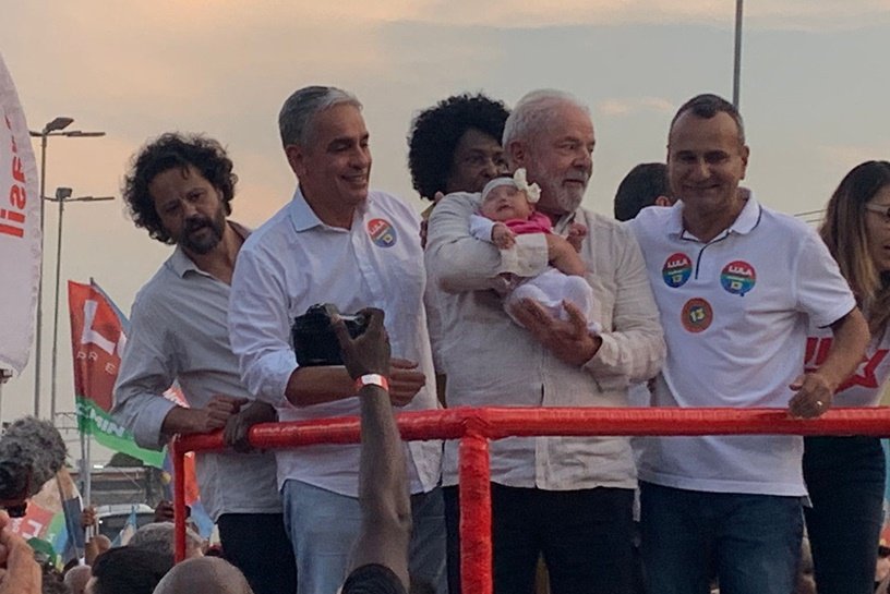 Lula esteve acompanhado da esposa, a socióloga Rosângela Silva, a Janja; da deputada federal Benedita da Silva (PT); do presidente da Assembleia Legislativa do Estado do Rio de Janeiro (Alerj), André Ceciliano (PT), quinto colocado na corrida ao Senado nestas eleições; além de Waguinho.