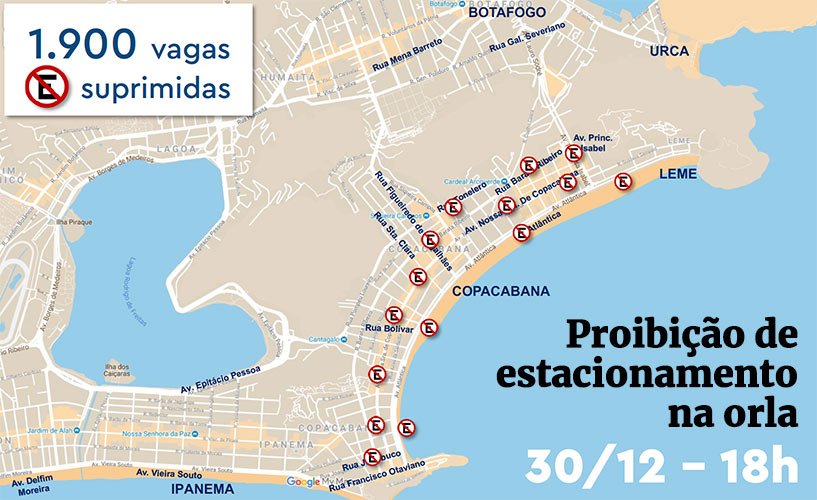 Estacionamento: não será permitido parar o carro em Copacabana e nas vias de acesso a partir das 18h do dia 30/12;
